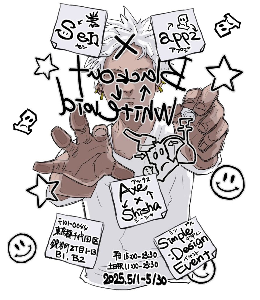 2024年1月に開催いたしました合同展示【煙焚 confidential】で参加いただいたSen、Appzの2名が今回「モノクロ×シンプル」をテーマで作品制作、展示を行います。