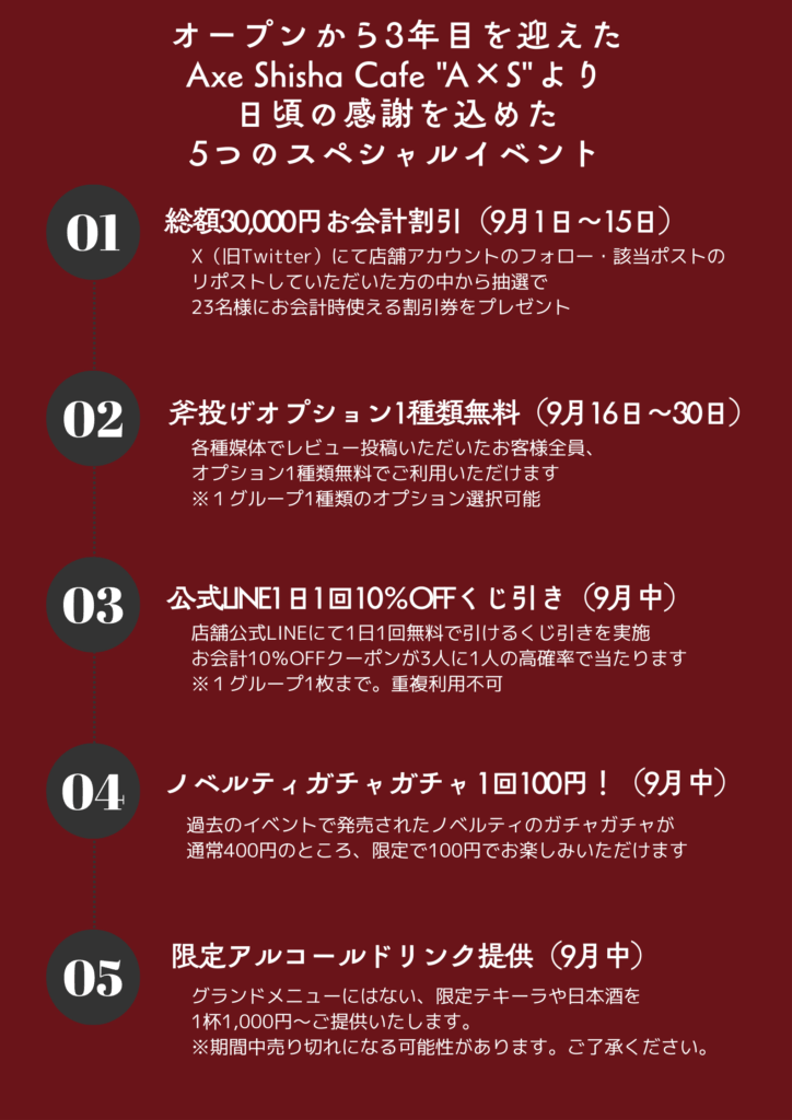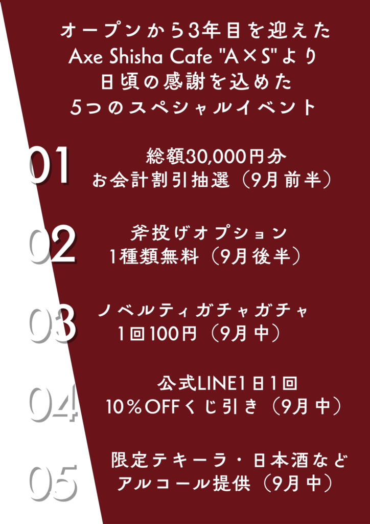 Axe Shisha Cafe “A×S”3周年イベント9月後半!