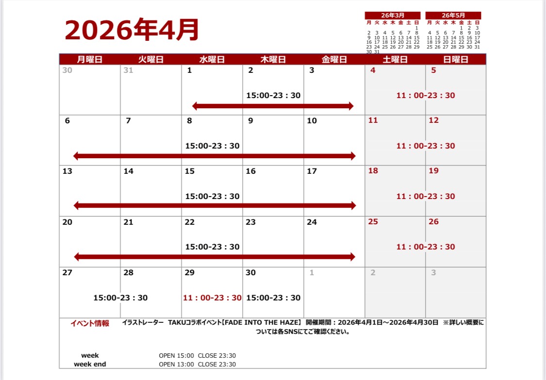 ▼2026年3月営業カレンダー